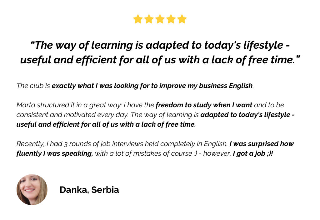 It's not a typical speaking club, where you just speak (and keep using the same words...). Every class is conducted by me and designed to actually improve your speaking skills.