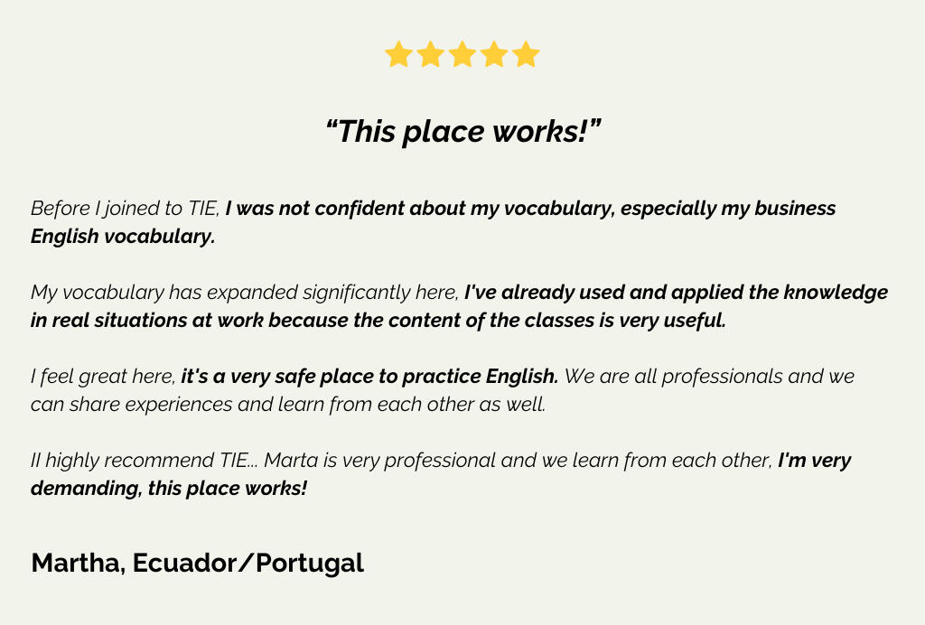 If you have any other questions or doubts, please send me a message at [email protected] or at @english.boosters on Instagram. If I think TIE isn't the right fit for you, I'll tell you as well.
